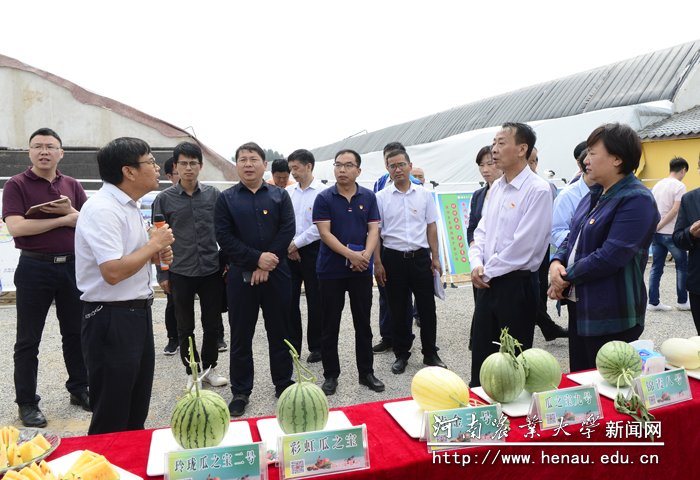 校党委书记魏蒙关听取马长生教授介绍我校选育的蔬菜和瓜果新品种种植