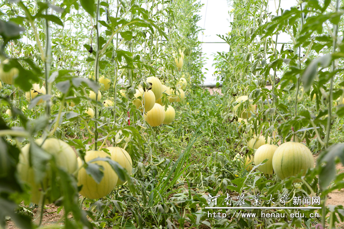 座谈结束后,魏蒙关一行到夹河乡于楼现代农业示范园,参加了台前县农业产业暨优质瓜果蔬菜观摩推广活动。在示范园内,由我校支持建设并提供技术指导的大棚内,彩虹西瓜、巧克力西红柿、墨秀辣椒、北宋樱桃等十余种高品质瓜果蔬菜喜获丰收,芳香四溢,五彩缤纷,吸引了附近众多群众纷纷前来参观学习交流。