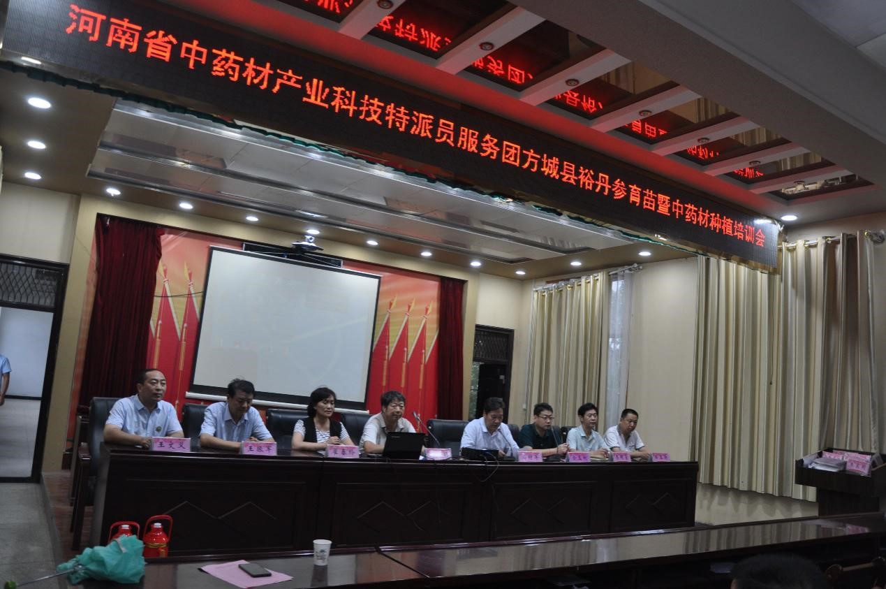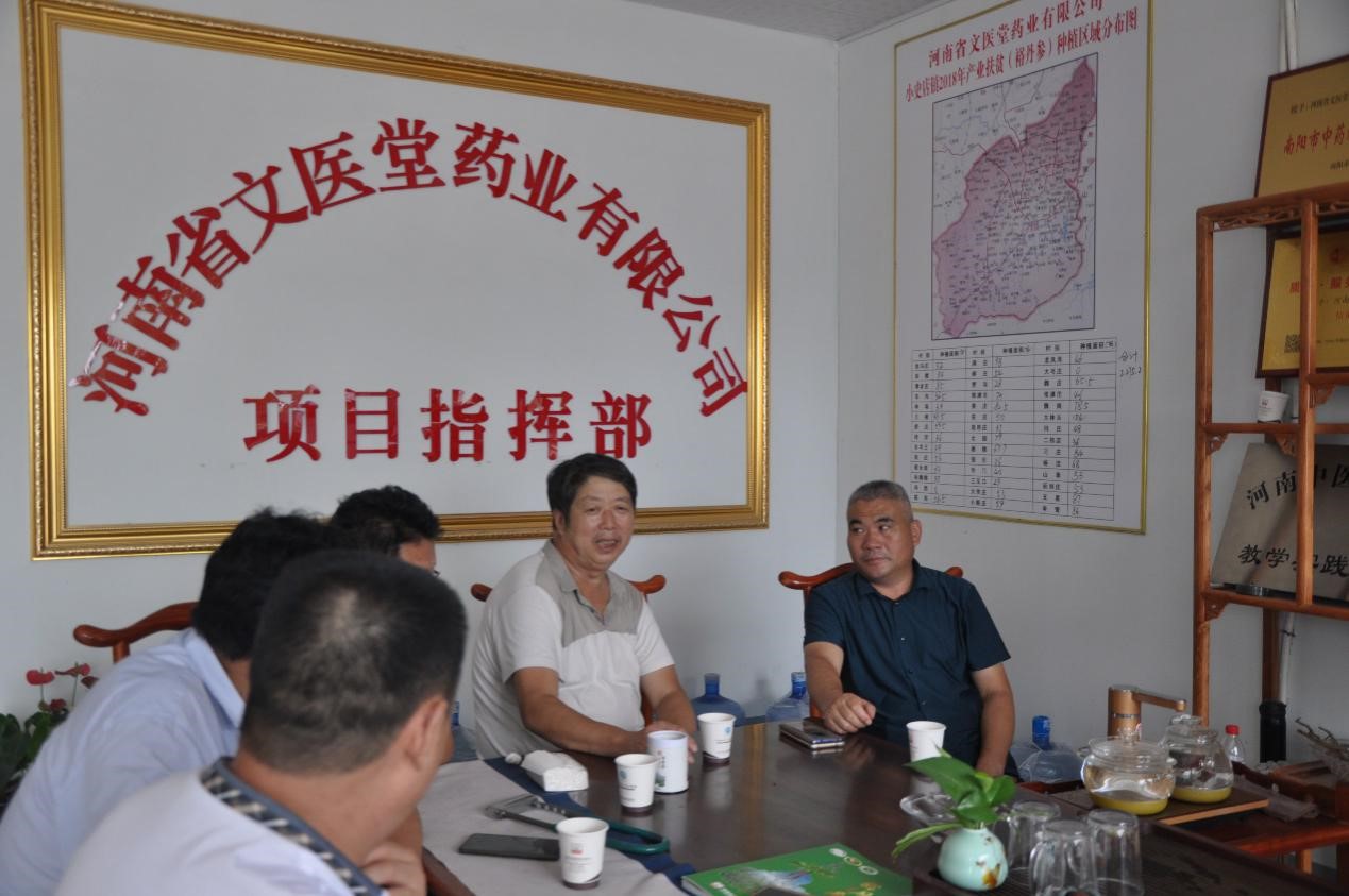 服务团一行对当前丹参育苗开展培训,并到河南省文医堂药业有限公司和方城县洪韵菊花种植专业合作社中药材生产基地进行了丹参和菊花生产指导,强调了丹参育苗和菊花夏季管理的重点注意事项。服务团来到河南省文医堂药业有限公司丹参种植基地,对丹参夏季管理过程中存在的问题进行了指导,并对下一步的工作提出了合理的建议。当前正是丹参育苗关键时期,服务团高致明教授就裕丹参育苗进行了室内培训。服务团来到方城县洪韵菊花种植专业合作社,针对菊花夏季管理等生产上存在的问题与合作社负责人进行了探讨和指导。