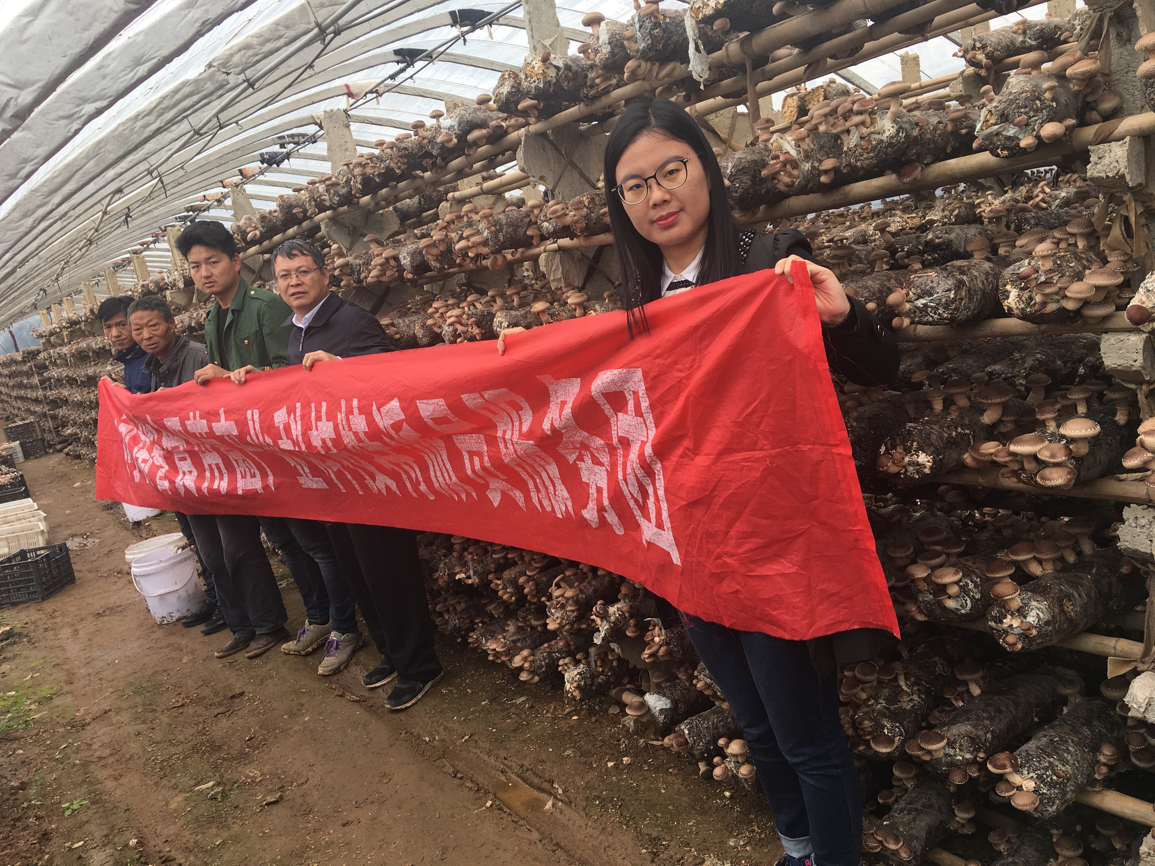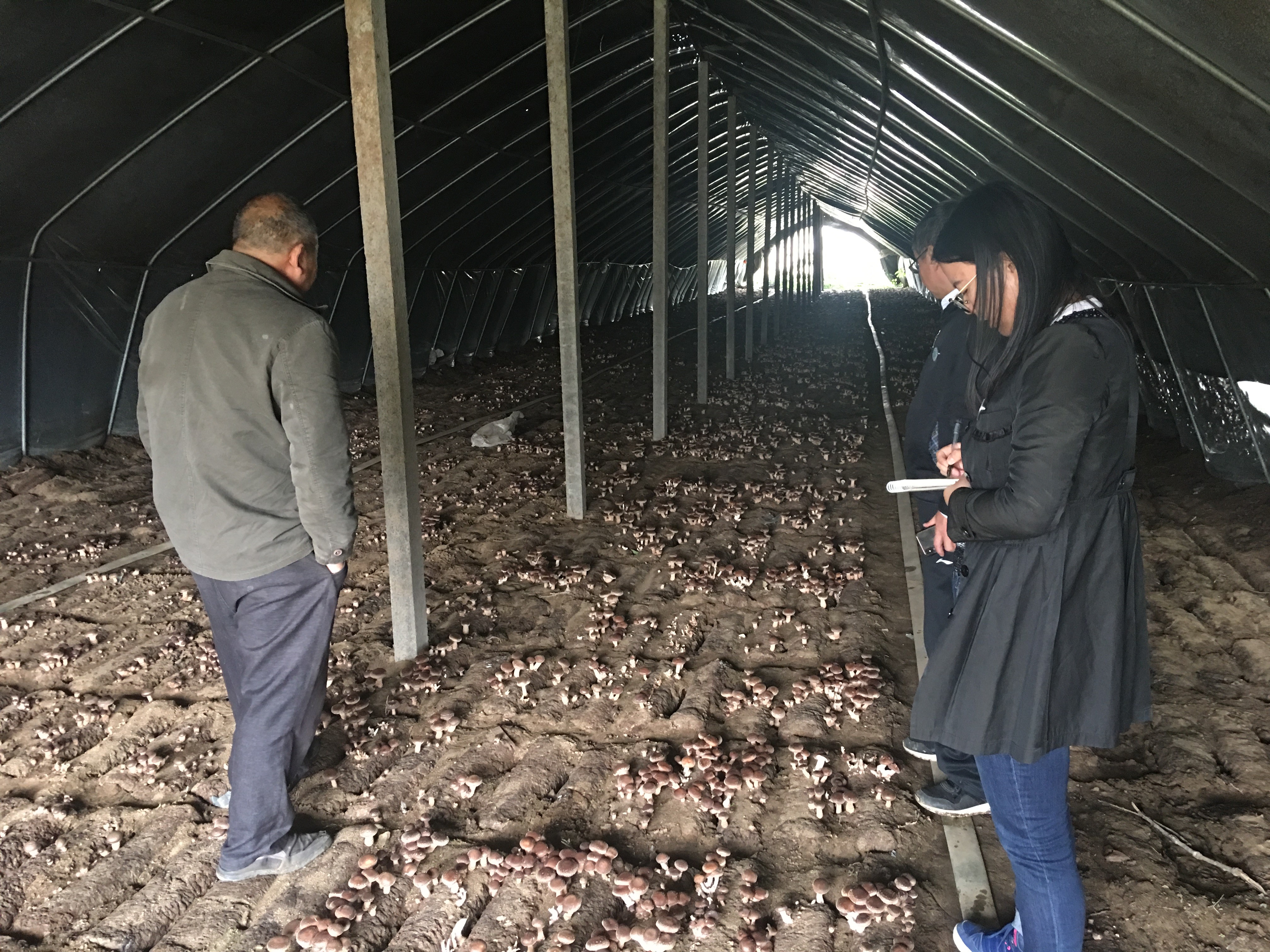 食用菌科技特派员服务团在万发食用菌合作社指导地栽香菇管理