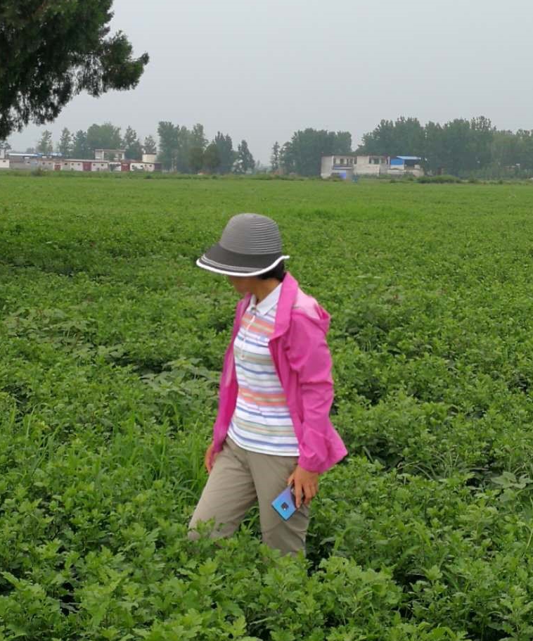 张红瑞副教授在方城县清河乡查看菊花生长情况