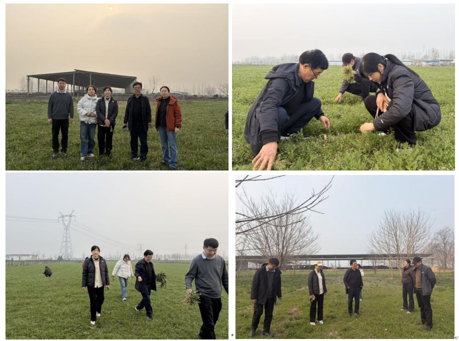 混播草地营养均衡直接关系母牛健康与繁殖性能,科学的饲草配置和放牧管理,是提升养殖效益、保障产品品质、改善动物福利的关键。春季杂草快速滋生,易与饲草争夺养分,严重影响草地产量与利用效果,是当前牧场生产管理的重点难点。调研团队实地查看草地长势,针对地块间长势不均、杂草较多、部分饲草发黄等问题现场“会诊”,提出精准解决方案。王成章教授围绕杂草防控、科学追肥、全程绿色防控体系构建等方面给出具体技术指导;史莹华教授表示,将聚焦牧场需求,整合资源开展混播草地建植、杂草病虫害绿色防控、饲草高效利用等专项研究,为牧场生态高效可持续发展提供坚实技术支撑。同时勉励企业强化田间管理,提高饲草利用率,打造草饲牛肉特色品牌,建设中原农区生态养殖示范样板,助力农民增收和乡村振兴。调研中,专家团队还认真听取牧场在杂草防治、草地退化、利用年限短等方面的技术难题,逐一答疑并给出可行建议。此次调研服务精准对接企业生产需求,有效解决混播草地管理实际问题,为推动中原农区优质饲草高效利用、肉牛产业绿色高质量发展奠定了坚实基础。