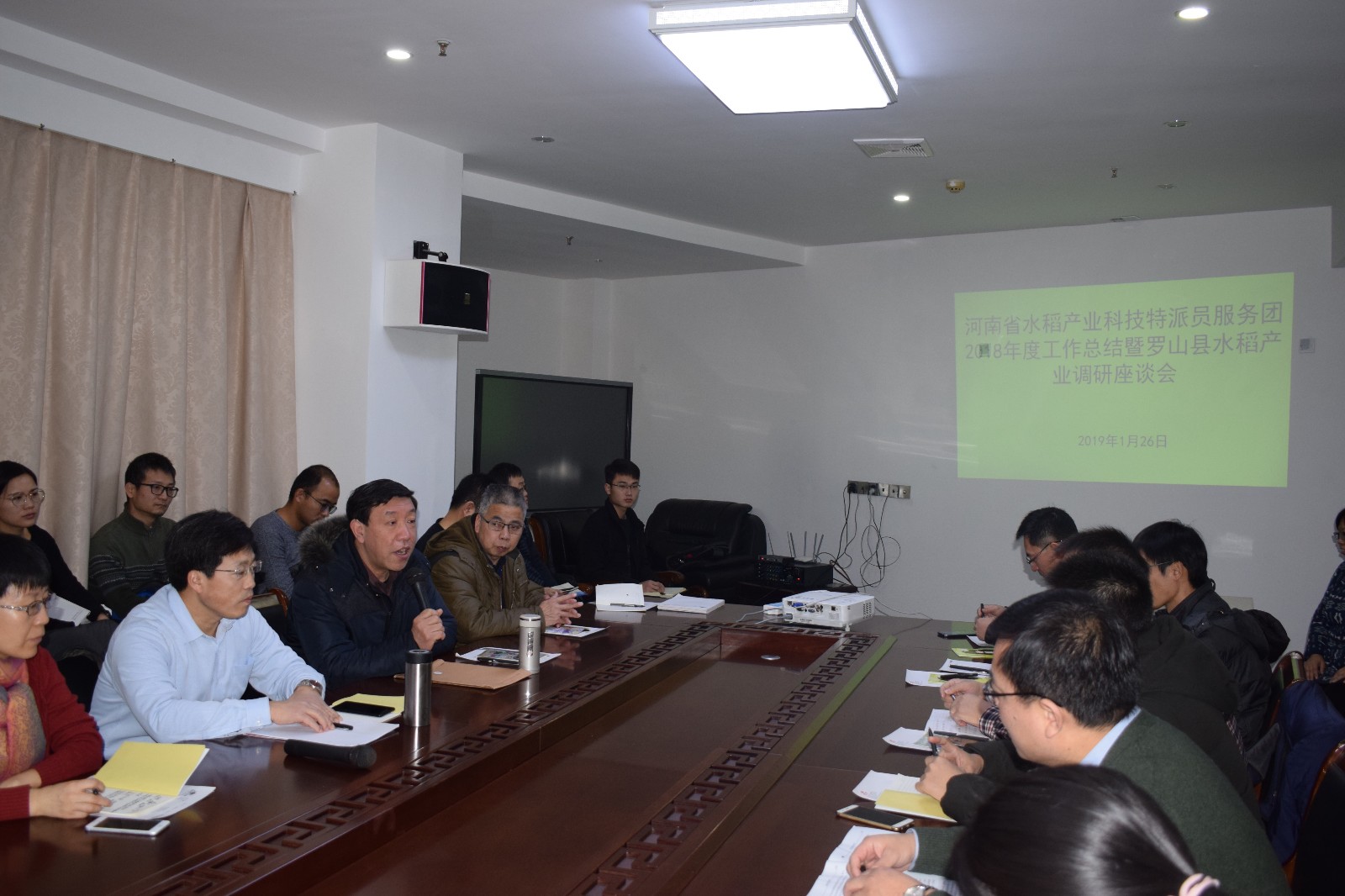 实地指导后,服务团与罗山县部分水稻种植大户及稻谷加工企业进行座谈,摸底2018年罗山水稻生产销售情况,就水稻栽培管理措施和病虫害防治方法等进行深入交流,为该县2019年水稻生产提出建议。