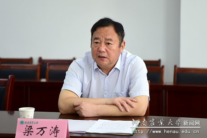 李留心对梁万涛等一行来校表示欢迎。他指出,作为农业大省的高等农业院校,服务地方经济社会发展,特别是服务“三农”工作是义不容辞的责任,希望双方以此次会谈为契机,结成密切的合作关系,依托校县合作平台,将合作做大做强。他表示,学校将充分发挥人才、智力和科技优势,通过组织专家服务团等形式,积极到夏邑县开展科技服务,在农业产业规划、项目合作和平台建设等方面当好参谋;在科技扶贫、教育扶贫等方面与夏邑县结成对子,为夏邑县脱贫攻坚贡献力量。同时,他希望将夏邑县作为学校乡村振兴研究院的县级示范基地,双方共同开展理论研究,解决实际问题,探索乡村振兴的农大模式。