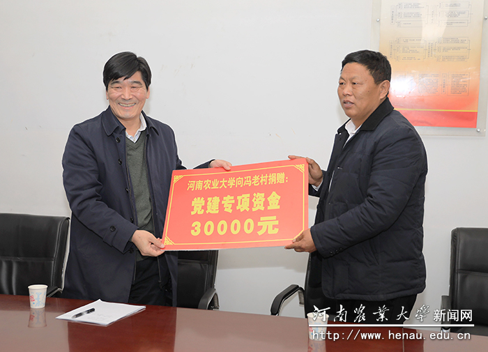 赵榴明代表学校向冯老村捐赠党建专项经费3万元